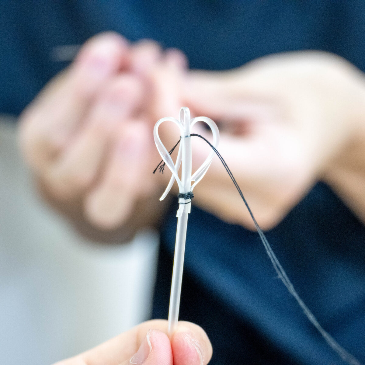 口腔内の唾液を24時間持続的に吸引できる専用機器。唾液による肺炎リスクを下げ、夜間の介助負担も大幅に軽減します。常に口腔内に当たる吸引口の先端部分には既成のプラスチックパーツがついていますが、利用者さまによってはその硬さや大きさに違和感がある場合もあります。そこでMCでは、形や素材を手作りで工夫し、一人ひとりの好みに合わせた快適な使用感の実現を目指しています。